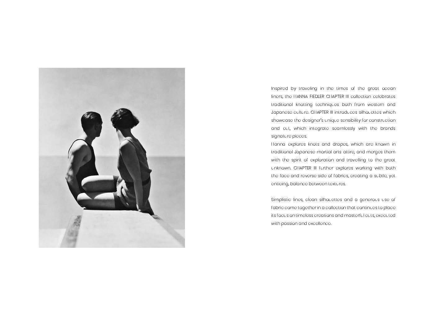 Inspired by traveling in the times of the great ocean liners, the HANNA FIEDLER CHAPTER III collection celebrates traditional knotting techniques both from western and Japanese culture. CHAPTER III introduces silhouettes which showcase the designer’s unique sensibility for construction and cut, which integrate seamlessly with the brands signature pieces.