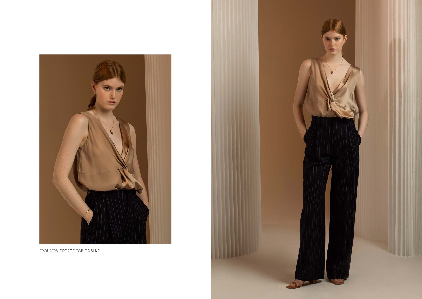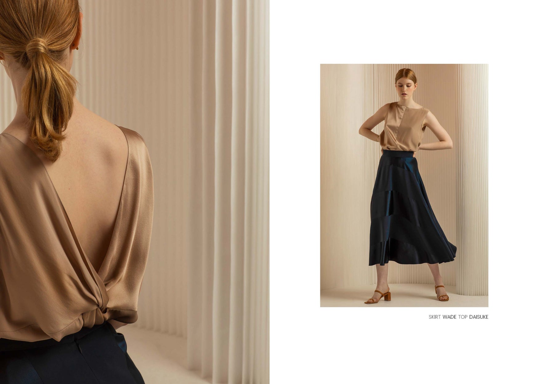 Hanna explores knots and drapes, which are known in traditional Japanese martial arts attire, and merges them with the spirit of exploration and travelling to the great unknown. CHAPTER III further explores working with both the face and reverse side of fabrics, creating a subtle, yet enticing, balance between textures.